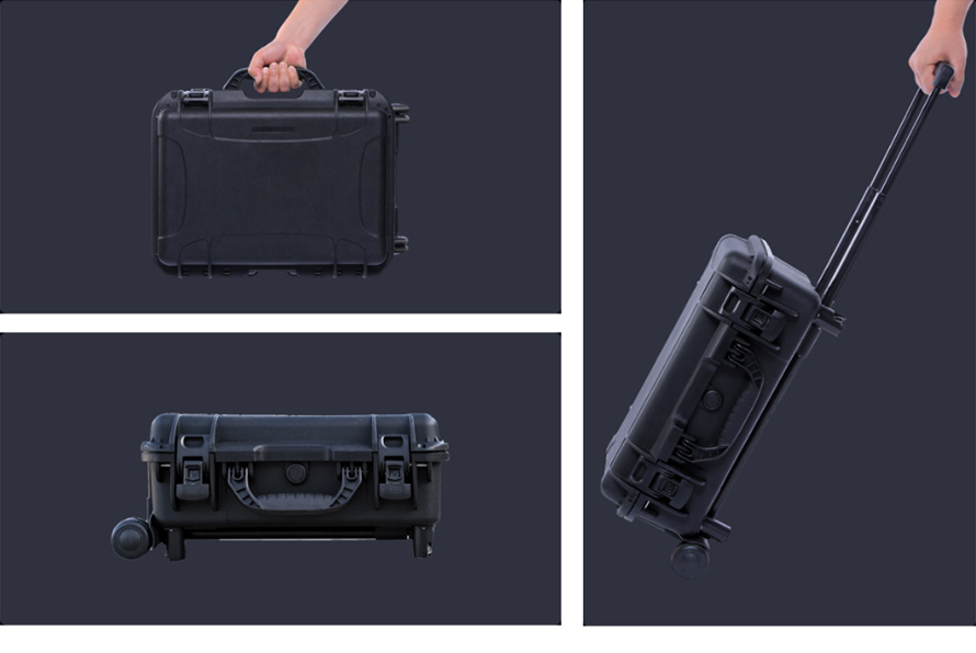コントロールコンソール・ボックスにはスーツケースと同様の2つのローラーを採用し、折りたたんだ後の持ち運びも容易です。アルミ合金製と樹脂で作られており、より頑丈で耐久性に優れています。