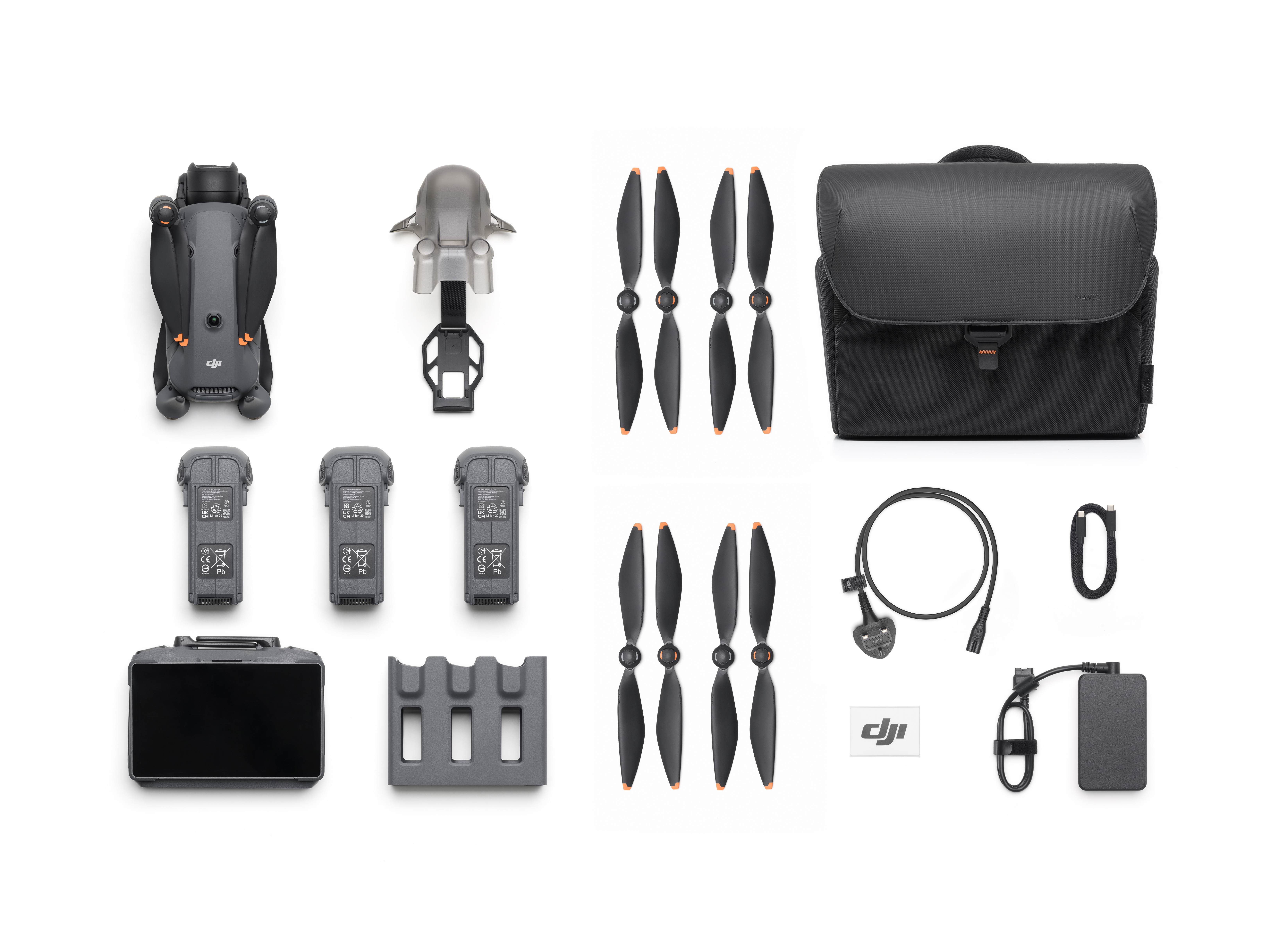 クリエイターコンボのDJI Mavic 4 Pro 512GBには、512GBの高速内蔵ストレージ、7インチ高輝度Mini-LEDスクリーン搭載のDJI RC Pro 2送信機、240W電源アダプター、USB-C - USB-C高速データケーブルが含まれています。また、追加のバッテリー2個、パラレル充電ハブ、ショルダーバッグなど、すべてが1つのパッケージに含まれています。