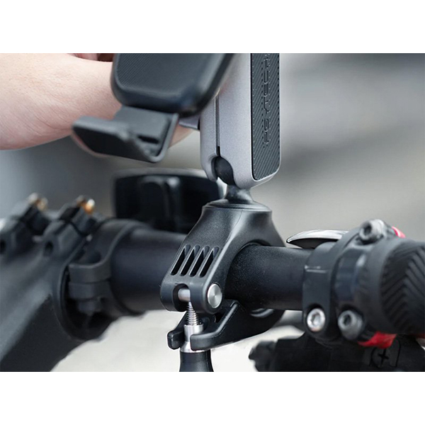 自転車やバイクのハンドルに簡単に取り付けられるよう、手動でねじれる台座を採用し、でこぼこ道でも倒れたり揺れたりすることがありません。