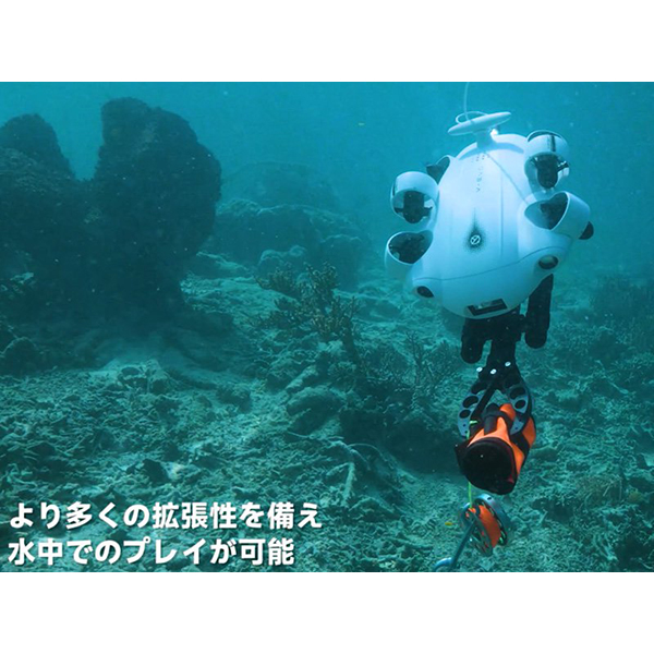 独自の技術開発によって、あらゆる方向で自由自在に姿勢維持が可能で、直感的な動きが実現可能です。また、機体は任意の角度で深度ロック、角度ロックが可能で、安定的に水中ホバリングしながら様々な方向を観察できます。