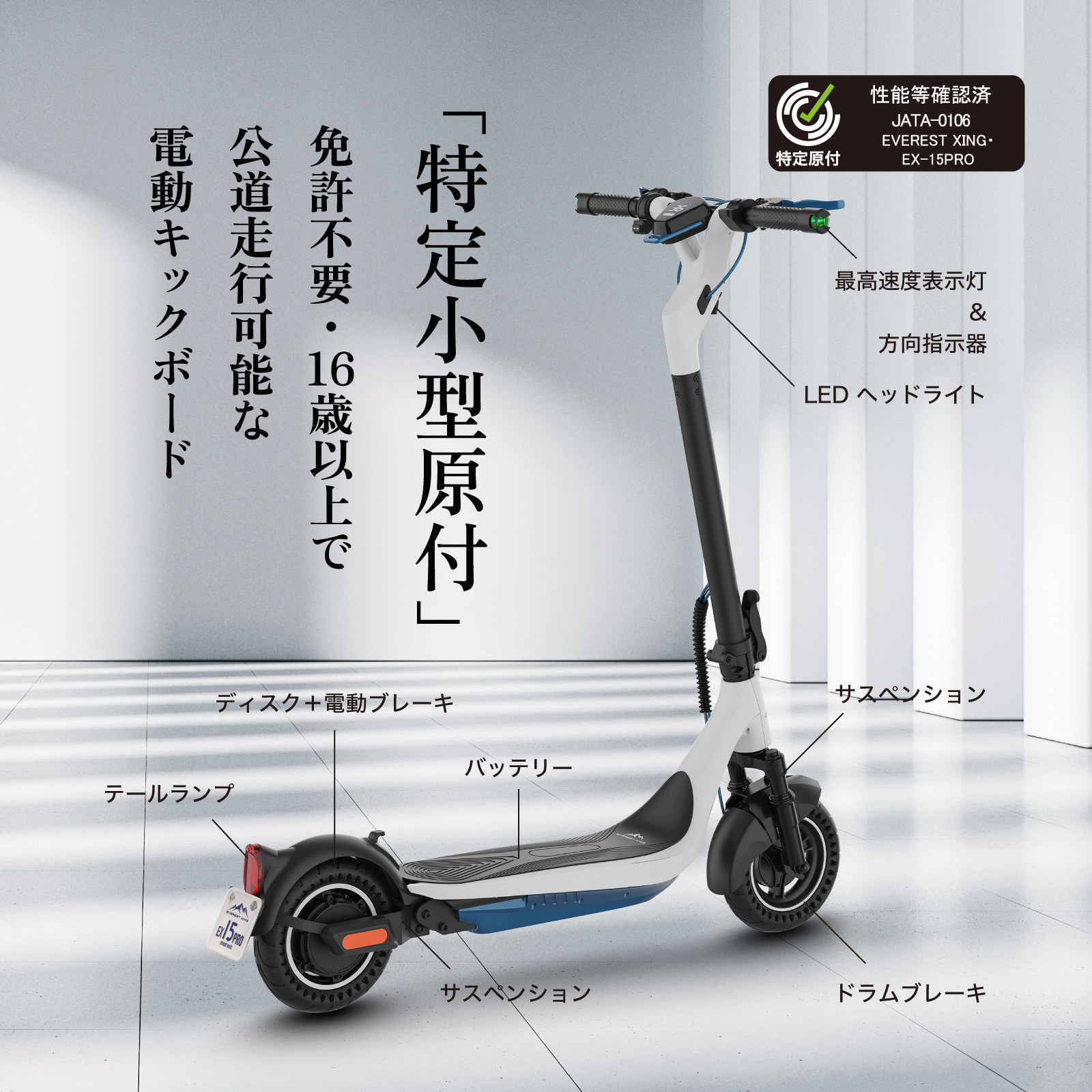 EVEREST XING EX15 PRO 特定小型原付モデル 電動キックボード(ホワイト)