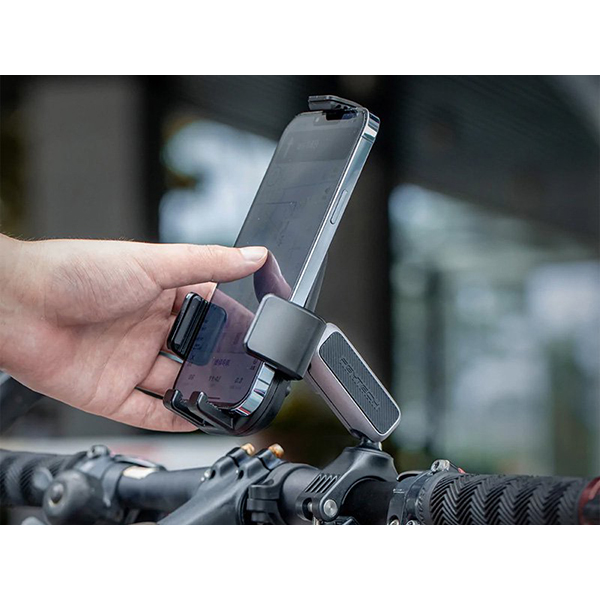 自転車やバイクのハンドルに簡単に取り付けられるよう、手動でねじれる台座を採用し、でこぼこ道でも倒れたり揺れたりすることがありません。