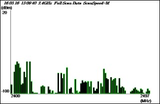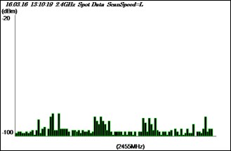 電波環境チェッカー「RF Scope」は、ドローンの離発着場所周辺や飛行エリアを事前に計測しておくことで、無線LANとの干渉や、他の無線通信の状況を視覚的に確認できます。これらによりドローンの運行管理における無線環境の安全を確保できます。主な機能としては、選択した周波数帯を順次スキャンしてどこからか電波が発信されていないかをチェック(電波強度を計測)できます。また周波数を固定(2.4GHz帯 920MHz帯)しての連続スキャンチェックも可能です。