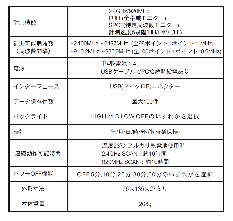 株式会社アローセブン製 RF Scope ARN-7010 仕様