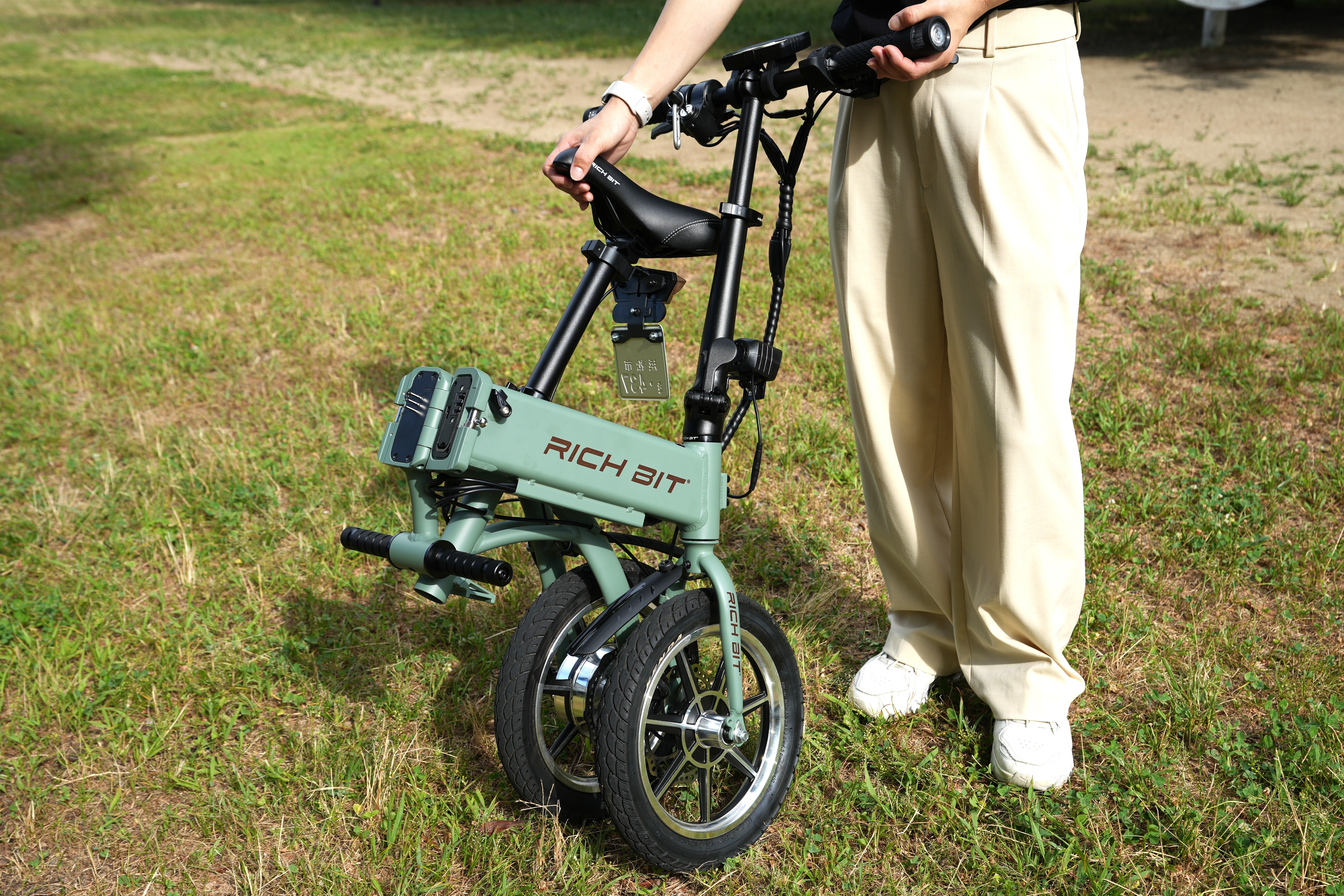 バイクよりも手軽に、自転車よりも楽々移動できる電動バイク“RICHBIT CITY”。 見た目は折り畳み自転車、性能は電動キックボードと原付バイクの良いとこどり。新感覚の乗り心地をぜひ体感してみてください。通勤通学などちょっとした街乗りでの移動におすすめですが、コンパクトで軽量なため、日常使いだけでなく、旅行先での移動手段としても大変便利。また現場間の移動や、工場間の移動など、業務でも活用できます。■RICHBIT CITYの特徴